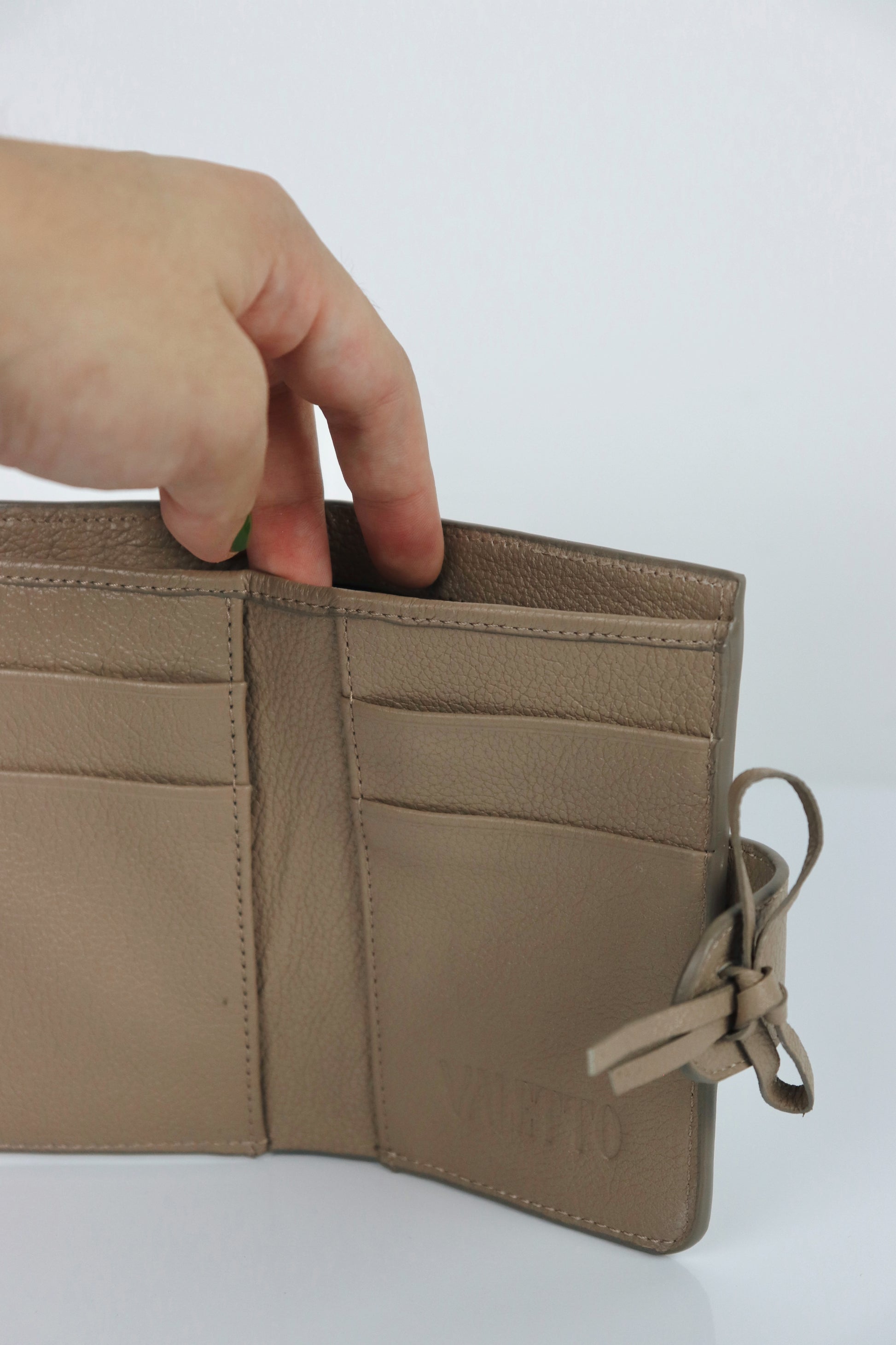 El nuevo accesorio favorito de tu dinero: "La Palomito Wallet". Tiene un diseño compacto que ofrece un amplio espacio para todas tus tarjetas, dinero en efectivo y monedas, hecho para combinar perfectamente con tu "Palomo Bag". Hazte destacar cada vez que saques tu billetera.